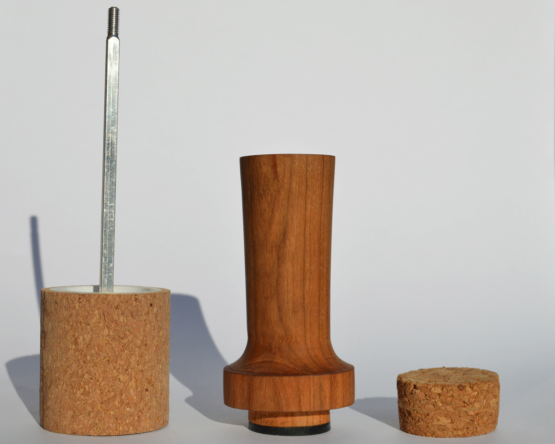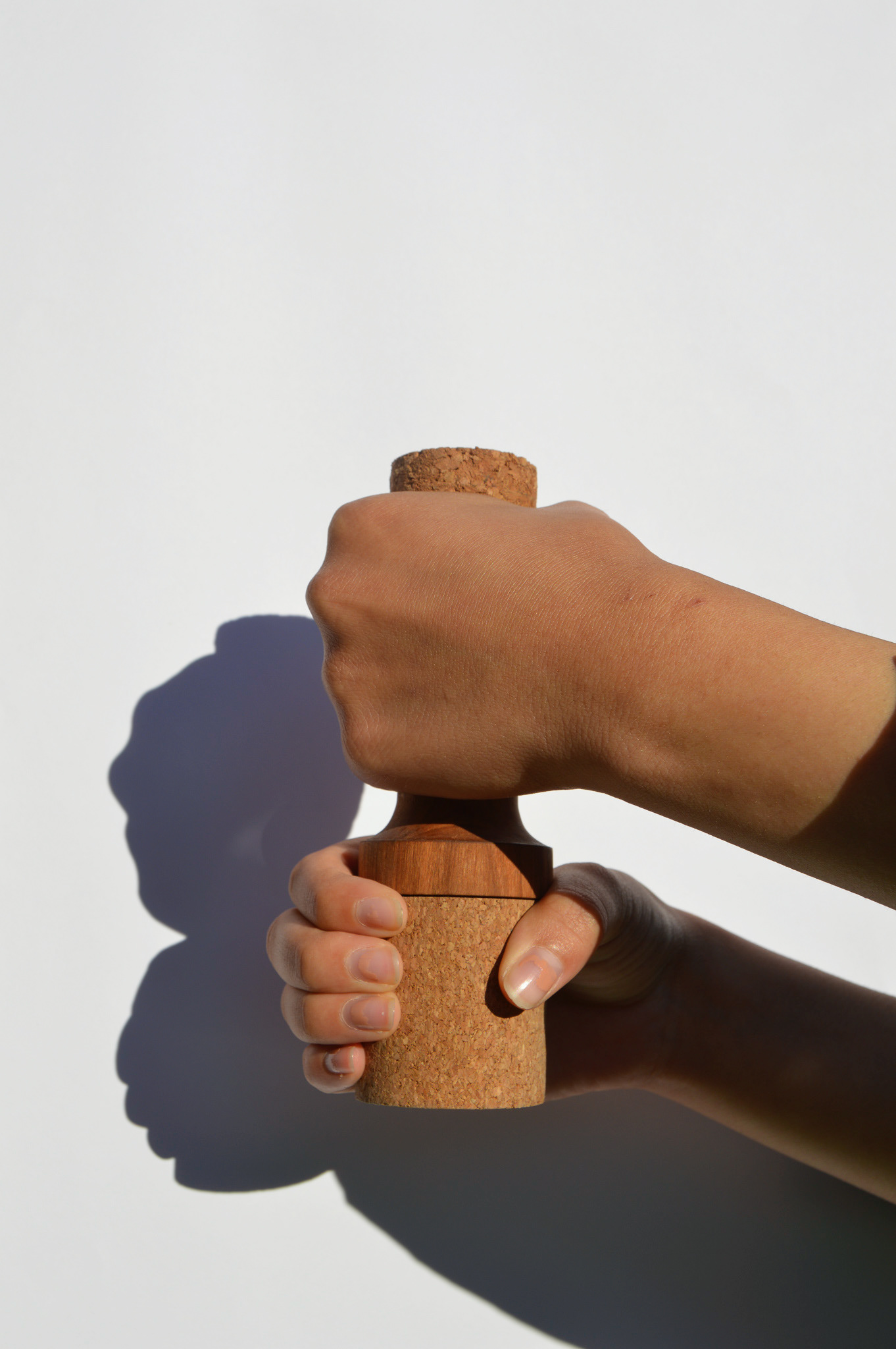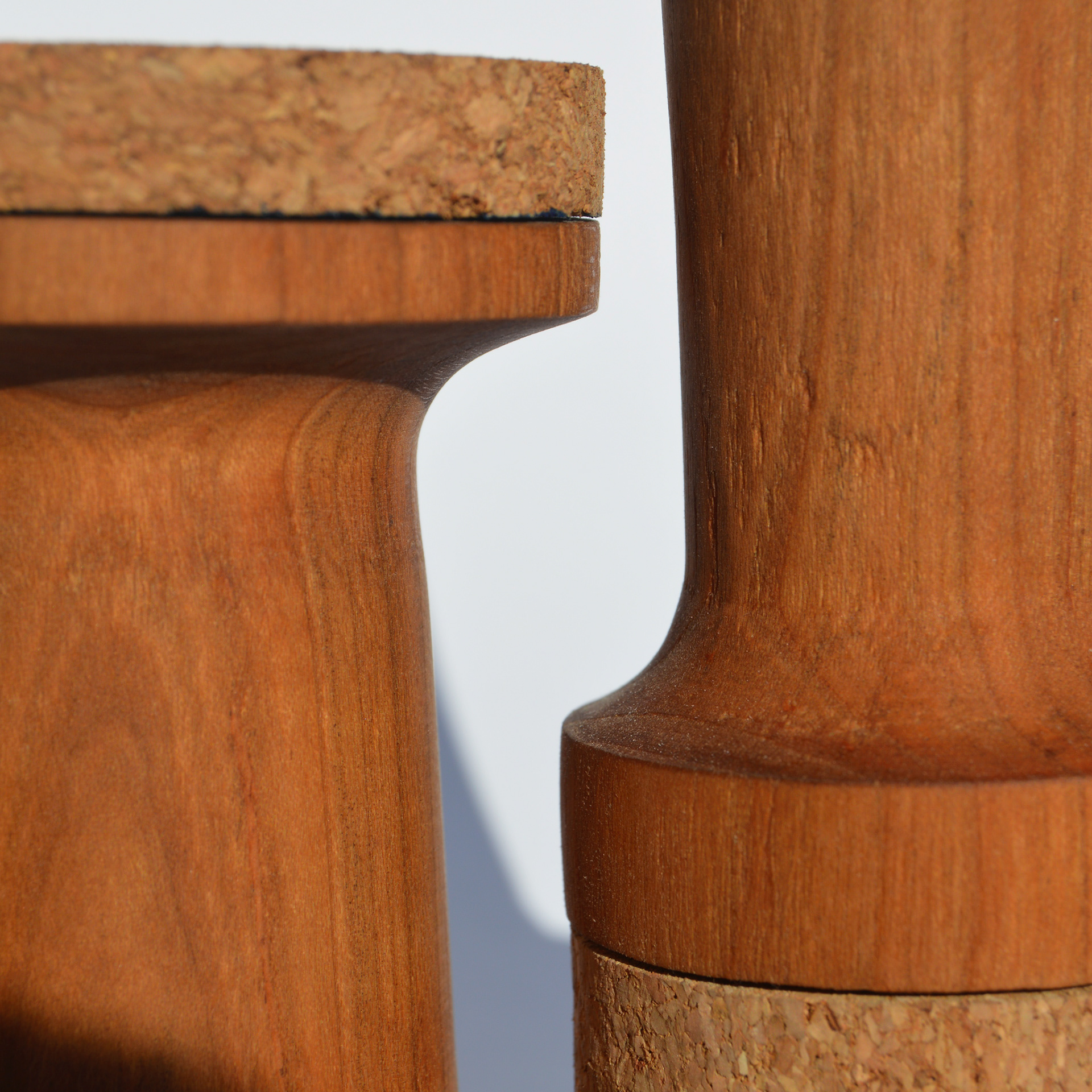 Rift is a pepper grinder and salt shaker set. It was made on a lathe out of cherry wood and cork.